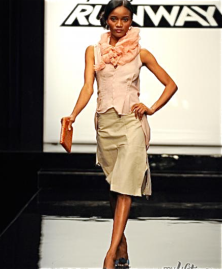 Design: That skirt is one of my favorite garments in Project Runway history. Great fabric, funky texture, unique silhouette, creative draping. Body-conscious and flattering and totally chic. The matching embellishments on the leggings are to die for.