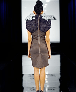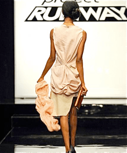 Execution: One of the most poorly-constructed garments in Project Runway history. This was the second garment in a row in which Jason ended up safety-pinning the dress together at the last minute. And you don’t need a Parsons-educated eye to see that there’s NO way the use of pins was intentional.