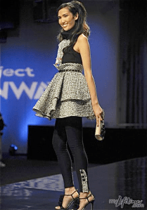 Execution: Mistakes were clearly made. AJ did not intend for the skirt to puff out from under the belt the way it does – it looks like she’s wearing a small rectangular petticoat to keep that awkward shape. A few weeks from now, the judges would have torn him apart for that mistake, but lucky for AJ, they had bigger fish to fry this week. And the hem lays flat in front, but appears like a bubble hem in the back; another mistake that can’t be intentional.