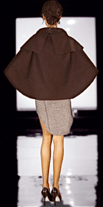 Execution: Is the hemline of the skirt supposed to be that crooked? I hate it whether it’s intentional or not. But the cape is well-constructed, and I actually don’t have any problems with the silk blouse.
