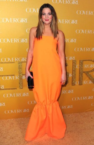 Awful hair, and the dress isn’t very flattering and looks pretty disheveled, but at least it’s a lovely color.