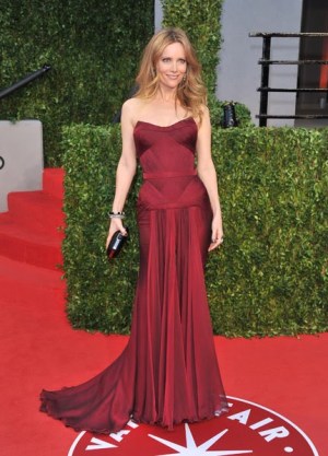 Mrs. Judd Apatow looks surprisingly chich! Love the color, the cut, the waist. Needs a necklace, though.