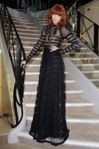Battle of the gingers! Florence dons her usual uniform of long-sleeved, long-skirted lace: