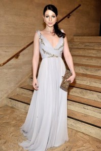 The ex-Big Love star is simple and chic, showing off that flawless porcelain skin in Versace.