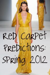 I proudly present the last part of your red carpet predictions from the Spring 2012 collections. (Missed the first three parts? Don’t fret.) Don’t forget to click on the starlets’ names for some of their recent red carpet history, and leave your sassy opinions in the comments.