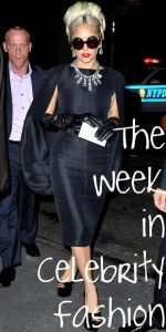Lady Gaga is who cape dresses were made for. There’s so few people on this planet who can make a cape look awesome, but Gaga is working the hell out of it. Loving the Rachel Zoe-looking sunglasses and the gloves, of course.