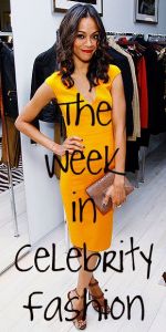 ZOE SALDANA in Los Angeles // dress, purse and shoes by Michael Kors