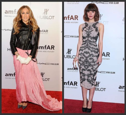 SJP shows off gritty-meets-pretty style in a leather jacket/pink ball gown combo. But can it beat Rose’s fab McQueen dress and classic, simple styling?