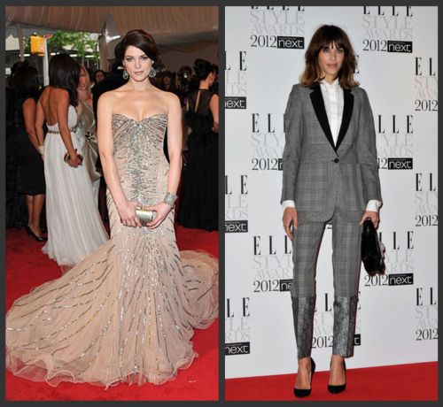 ASHLEY GREENE: gown by Donna Karan // ALEXA CHUNG: suit by Stella McCartney