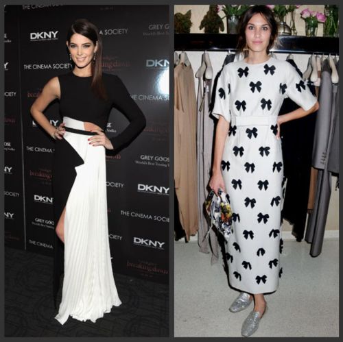 ASHLEY GREENE: dress by Narcisco Rodriguez // ALEXA CHUNG: dress by Chanel, purse by Christopher Kane