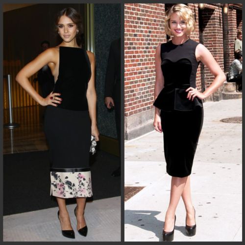 The ladies give us a tough decision in gorgeous little black dresses and matching shoes. Dianna goes for a textured black-on-black look with a peplum skirt, while Jessica looks vintage and romantic with a touch of print at the bottom of her dress.