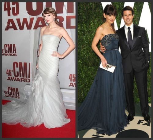 TAYLOR SWIFT: gown by Reem Acra // KATIE HOLMES: gown by Holmes & Yang