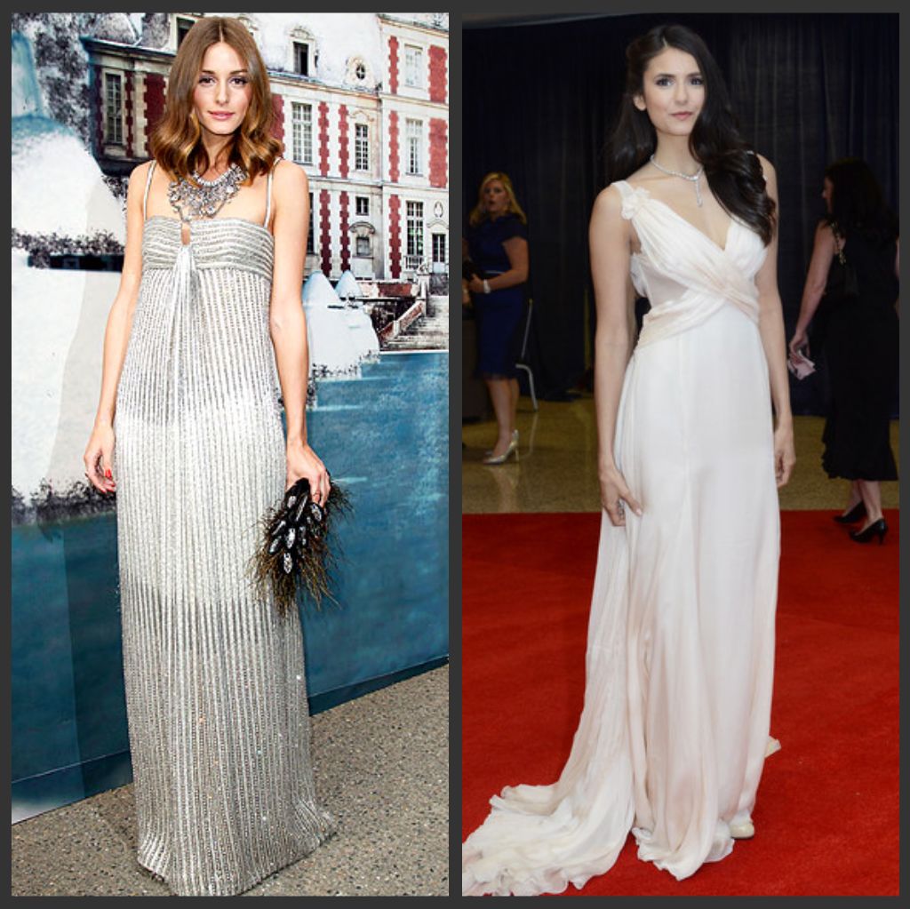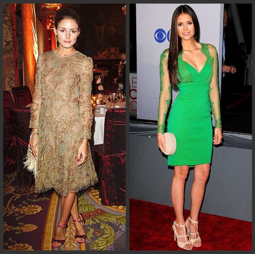 OLIVIA PALERMO: dress by Valentino, shoes by Stuart Weitzman // NINA DOBREV: dress and shoes by Elie Saab, purse by Lauren Merkin