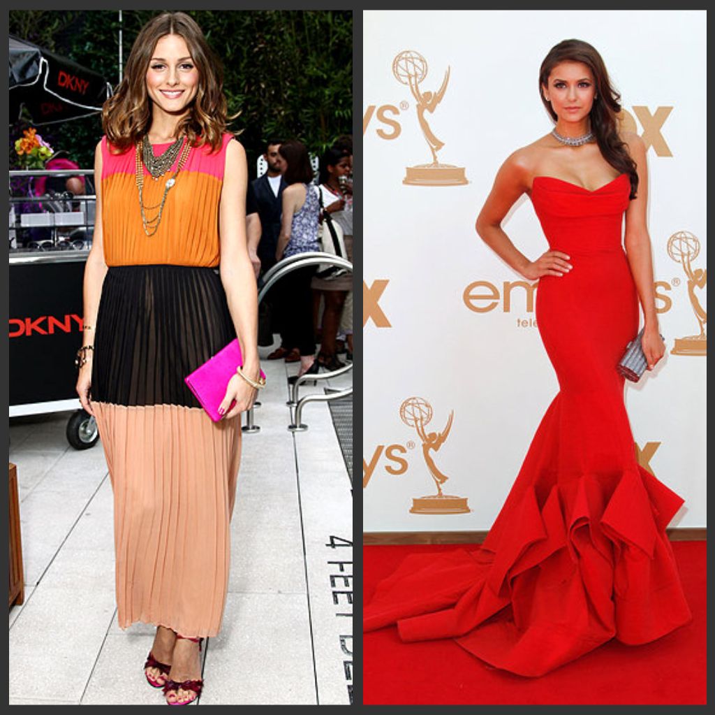 OLIVIA PALERMO: gown by DKNY, shoes by Stuart Weitzman // NINA DOBREV: gown by Donna Karan, purse by Judith Leiber