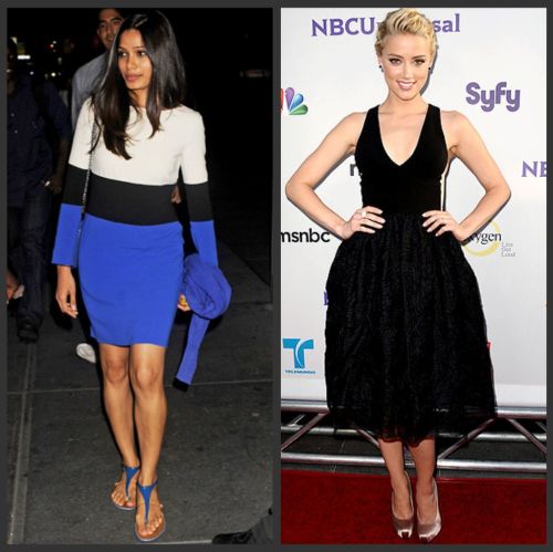 Freida Pinto is gorgeous in colorblocked Michael Kors (love the matching sandals!), while Amber rocks an LBD by Honor.