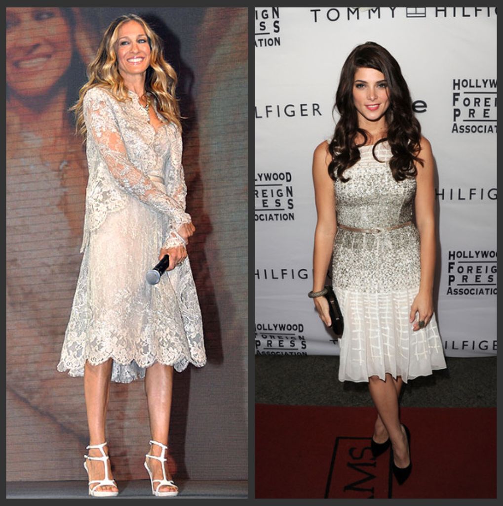 Soft waves! White dresses! Pointy shoes! Take your pick, dear readers: SJP’s Carrie Bradshaw throwback, or Ashley’s classic dress and fierce accessories?
