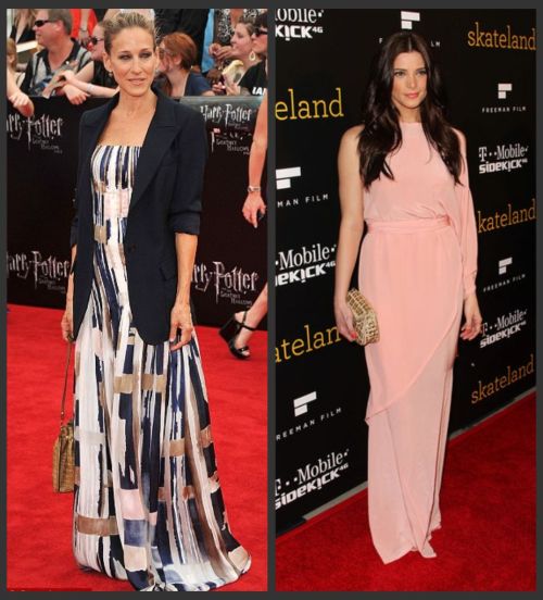 SARAH JESSICA PARKER: dress by Elie Saab, shoes by Alexander McQueen // ASHLEY GREENE: dress by Oscar de la Renta, shoes by Salvatore Ferragamo