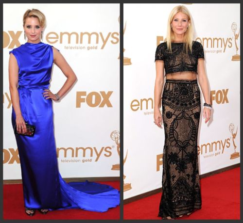Both ladies took risks at the Emmys, with Dianna in an unusual shade of blue, and Gwyneth in a fresh-off-the-runway crop top/skirt combo.