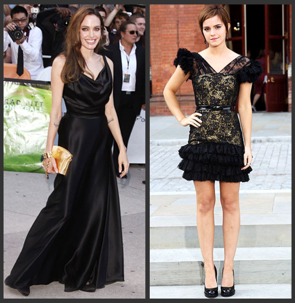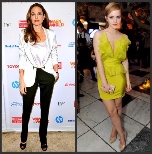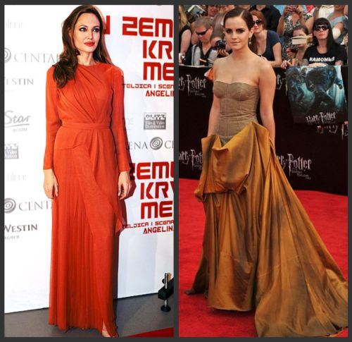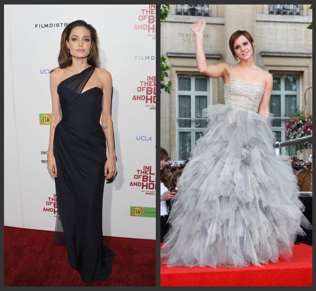 ANGELINA JOLIE: dress by Salvatore Ferragamo // EMMA WATSON: dress by Marchesa