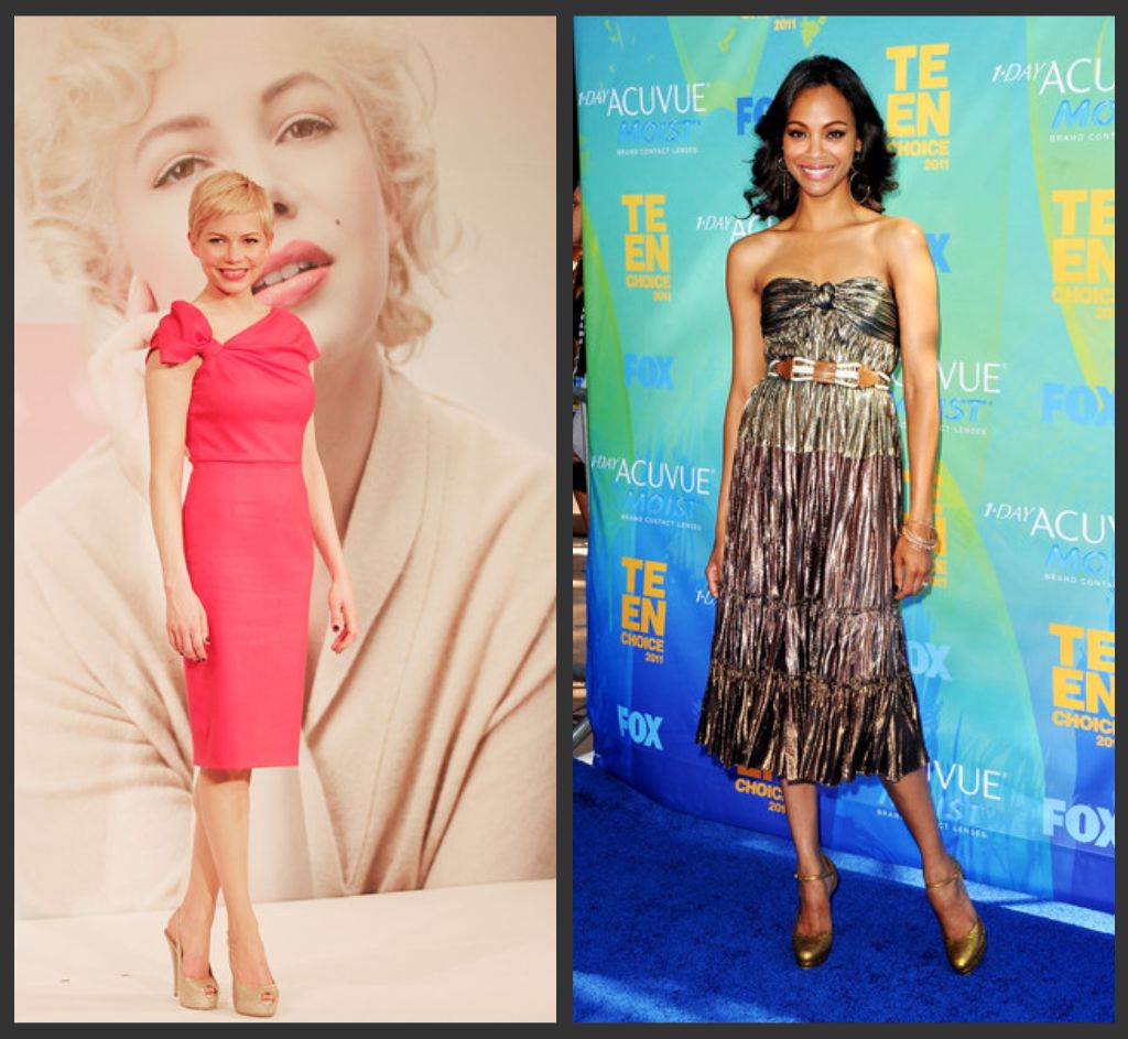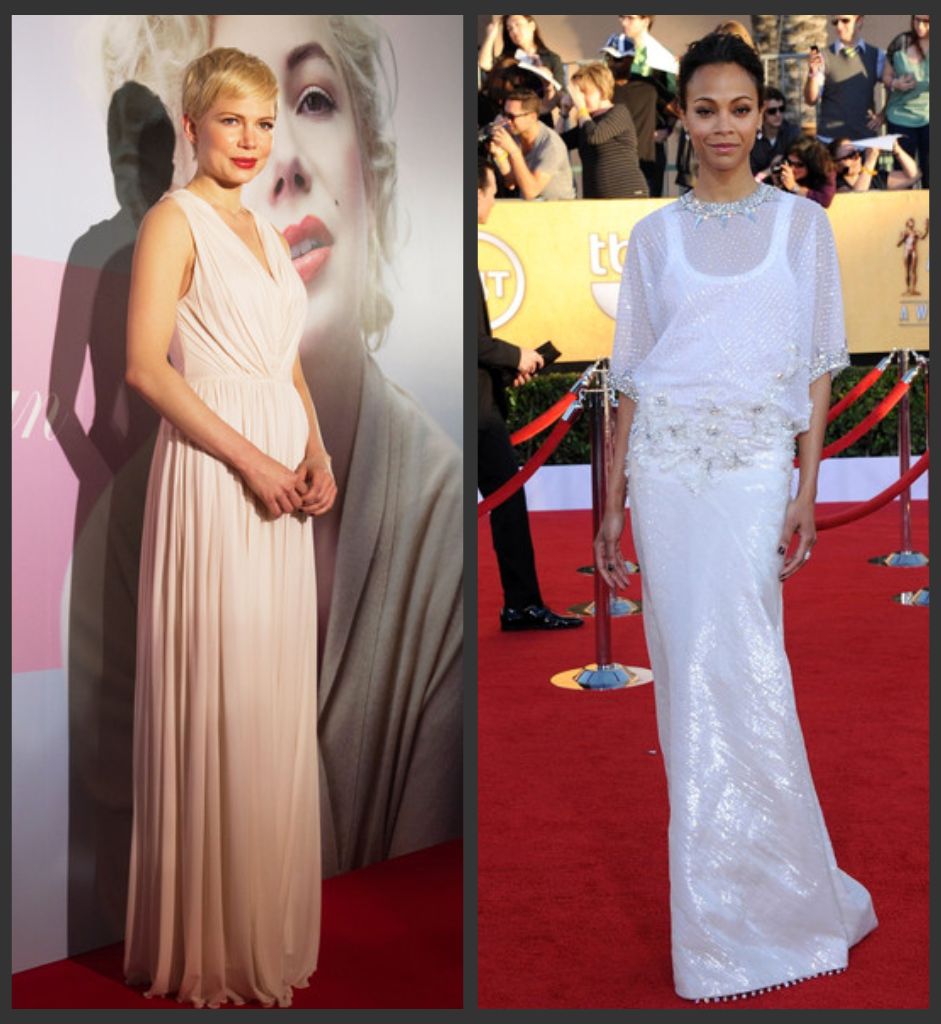 MICHELLE WILLIAMS: dress by Valentino // ZOE SALDANA: dress by Lanvin, shoes by Alexander McQueen