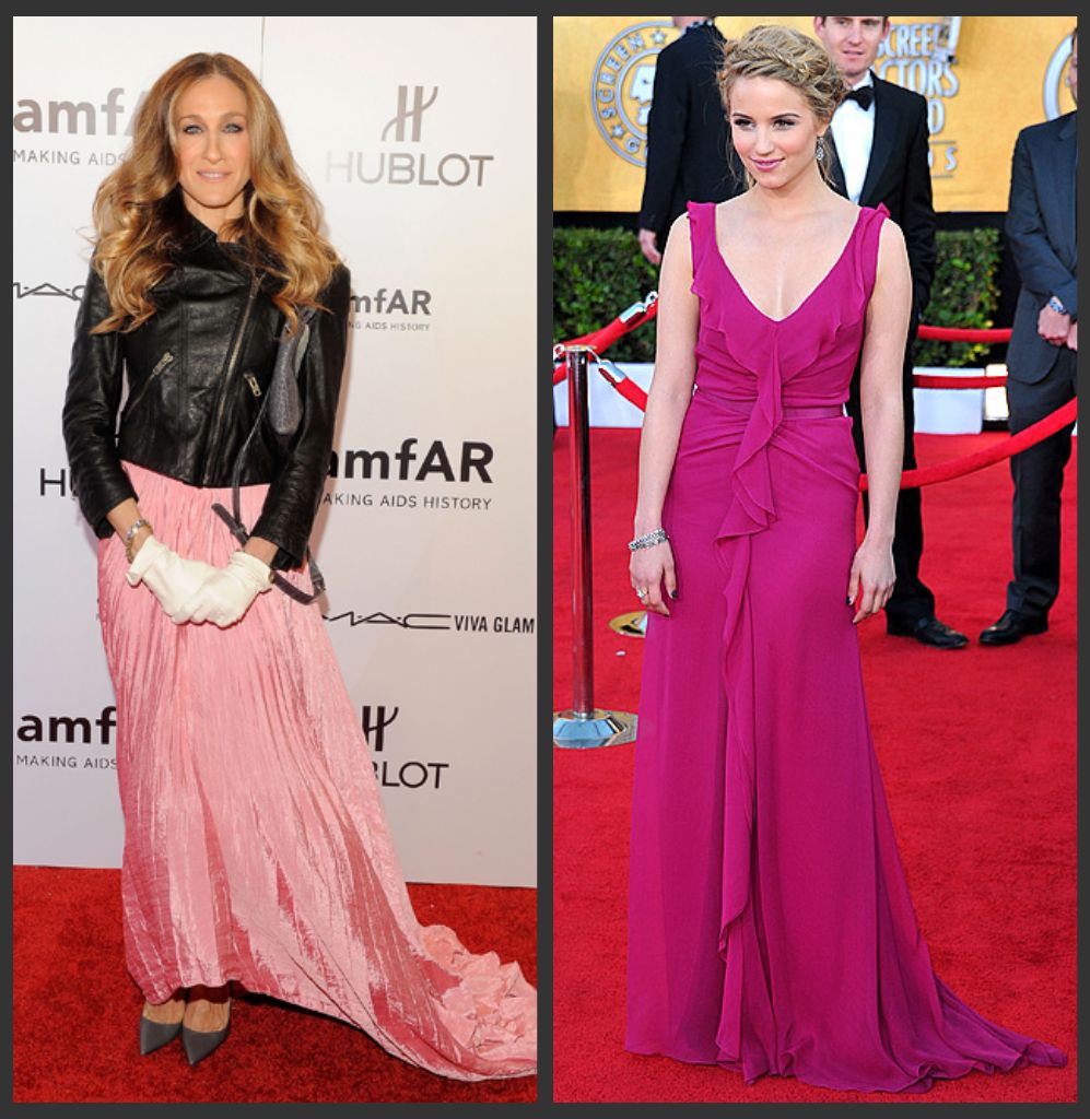 SARAH JESSICA PARKER: dress by Prabal Gurung, shoes by Salvatore Ferragamo // DIANNA AGRON: dress by Stella McCartney, shoes by Yves Saint Laurent