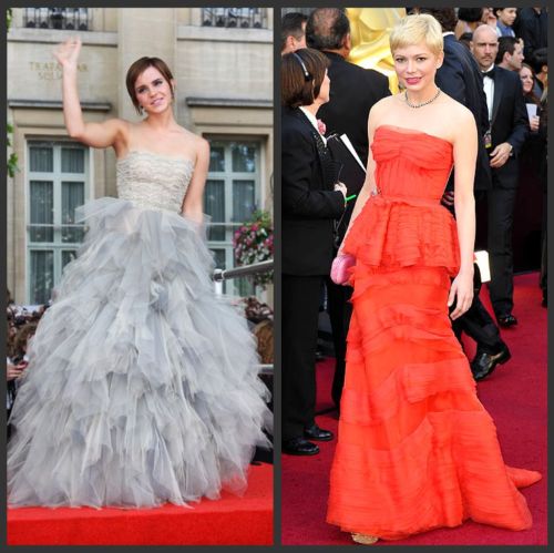 EMMA WATSON: dress by Valentino, shoes by Christian Louboutin // MICHELLE WILLIAMS: gown by Jason Wu, purse by Judith Leiber