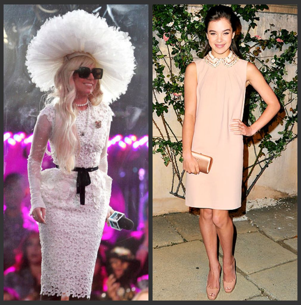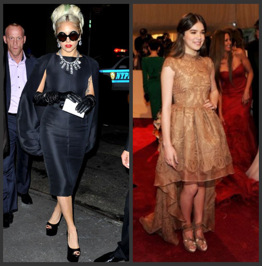 LADY GAGA: dress by Stephane Rolland, shoes by Brian Atwood // HAILEE STEINFELD: dress by Stella McCartney