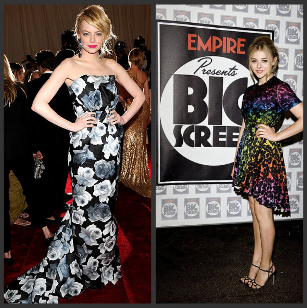 EMMA STONE: gown by Lanvin // CHLOË MORETZ: dress by Christopher Kane