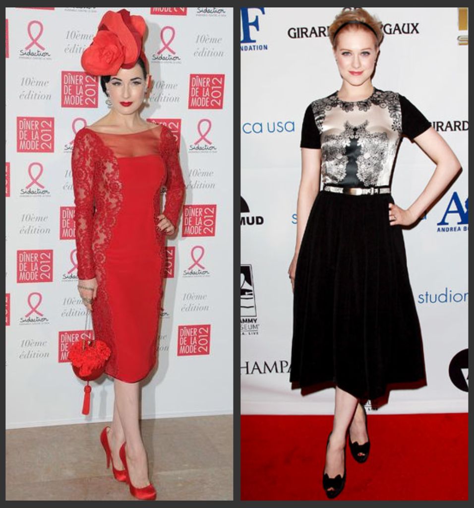 DITA VON TEESE: gown by Tadashi Shoji // EVAN RACHEL WOOD: dress and shoes by Gucci