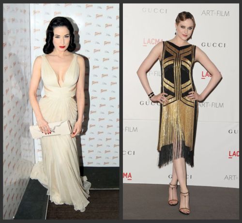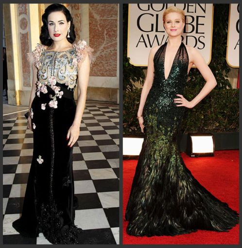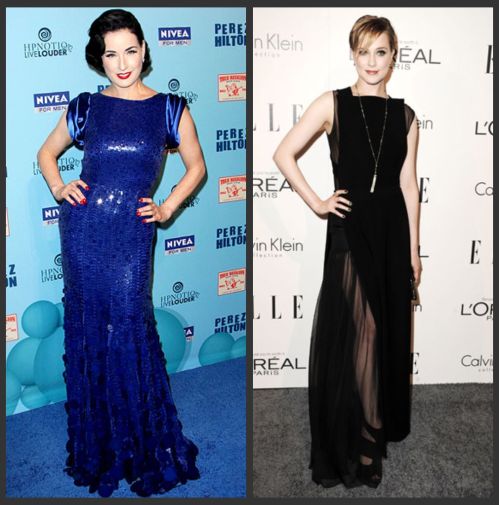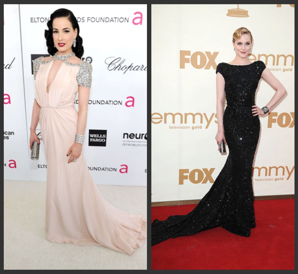 DITA VON TEESE: gown by Alexis Mabille // EVAN RACHEL WOOD: gown by Gucci, purse by Judith Leiber