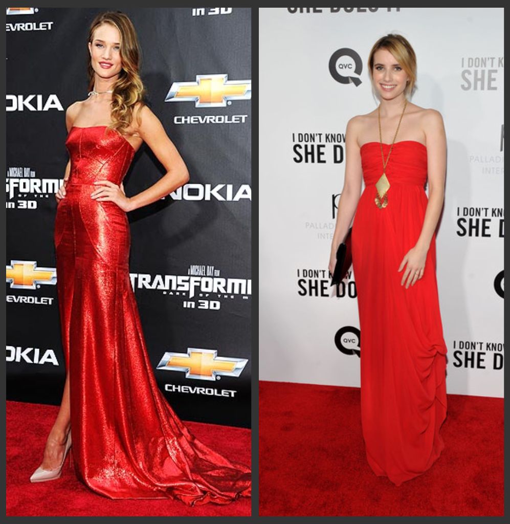 ROSIE HUNTINGTON-WHITELEY: gown by Antonio Berardi // EMMA ROBERTS: gown by Tibi