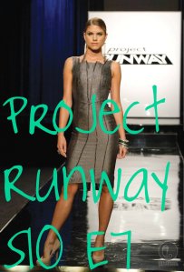 Melissa had a cryfest of her own, as she barely got this dress on the model in time. Somehow she garnered excessive praise from the judges, but I didn’t totally buy it. The dress has a fucking fish tail, the fabric is ugly, and the fit is a mess. I think it’s also too artistic to fit into this collection or be sold to the masses. I think it’s stylish and chic, and the neckline is definitely interesting and beautiful, but there were too many problems that I just couldn’t overlook.