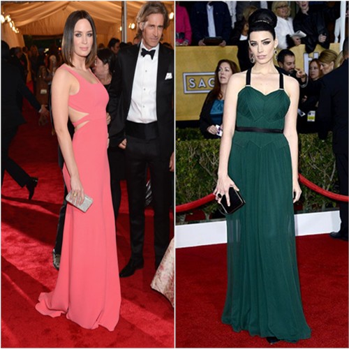 Jessica: A red carpet look is never complete without a ridiculously fabulous pair of earrings, Emily. How did Meryl never teach you that in a moment of method-acting?