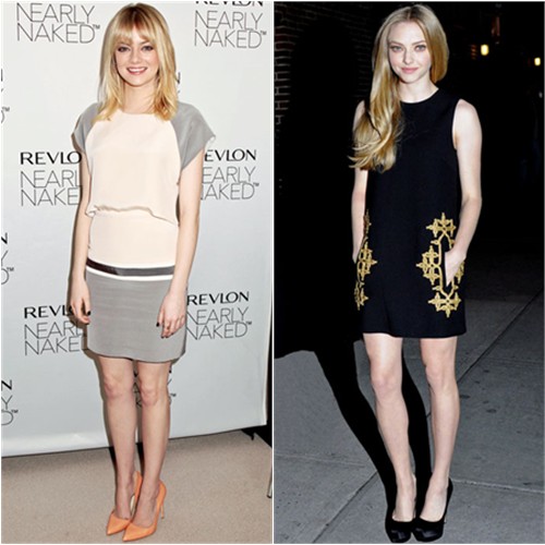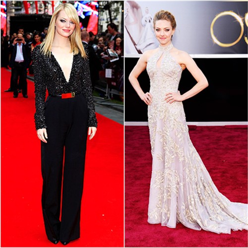 Emma’s dress by Chanel, shoes by Christian Louboutin; Amanda’s gown by Alexander McQueen, shoes by Rupert Sanderson