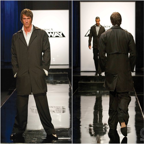 It’s still boring and awkwardly proportioned, and the guy’s wearing a flasher coat, for God’s sake, but it wasn’t nearly as bad as anything on Team Slick and Hip. (The team names were almost as atrocious as the clothes this week.) Also, the only thing Patricia made in this entire challenge was the shirt underneath this coat, which we barely saw – and it was better when we didn’t see it, because it was an over-designed mess of a textile.