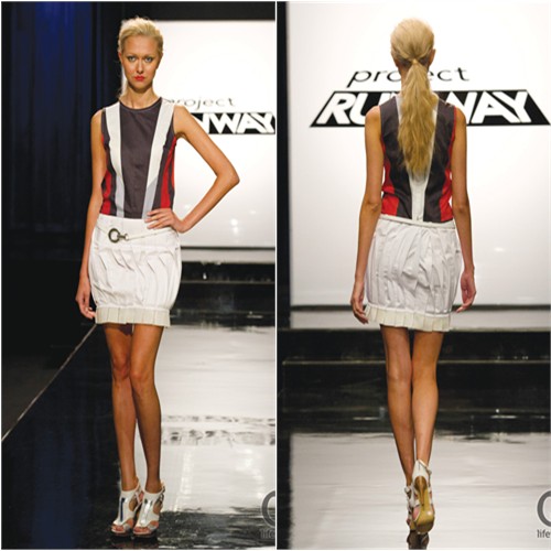 Richard should have been gone weeks ago. This was bad, but it wasn’t necessarily the worst thing on the runway – it’s just that there was nothing keeping Richard in this competition, so he would have had to pull out something noticeably good to have a chance. Instead, he made a boring top and a skirt no one would wear, so good riddance, Richard.