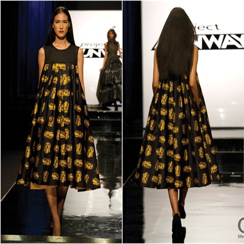 Michelle’s was art, but I preferred Standley’s- and I don’t like,and am not comfortable in that babydoll non-bodice. However, he had the cut beautiful, the flow was lovely, and the length was perfect for a tall girl- and I’m assuming all the models are tall. That’s also a design that would look well with many prints.