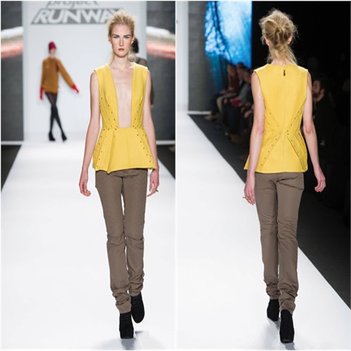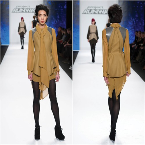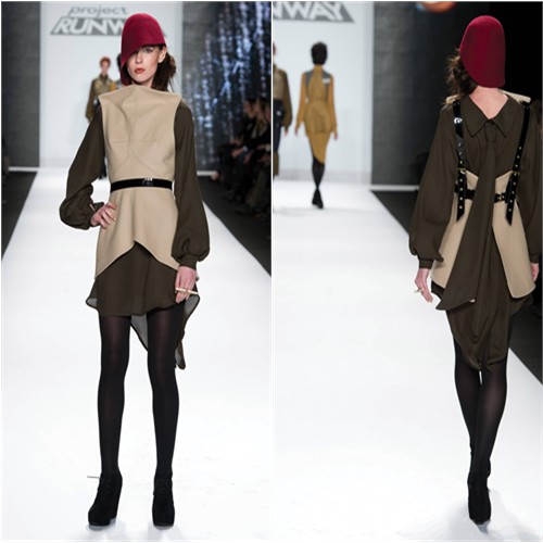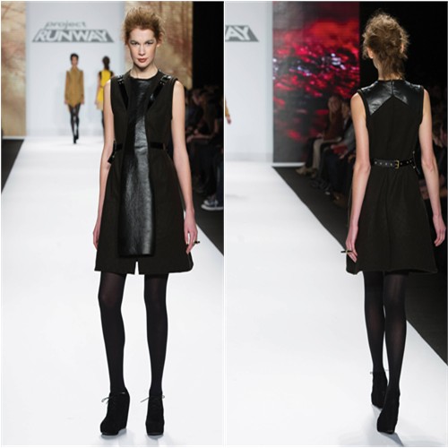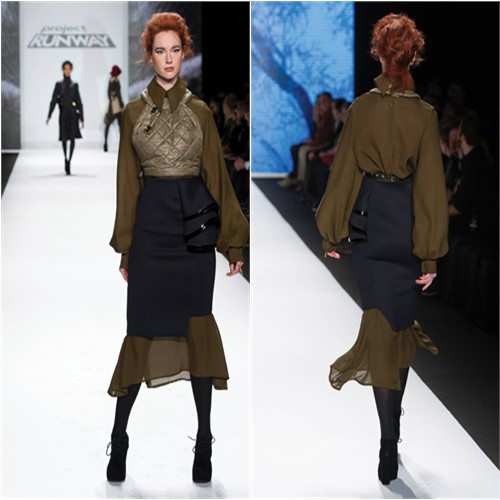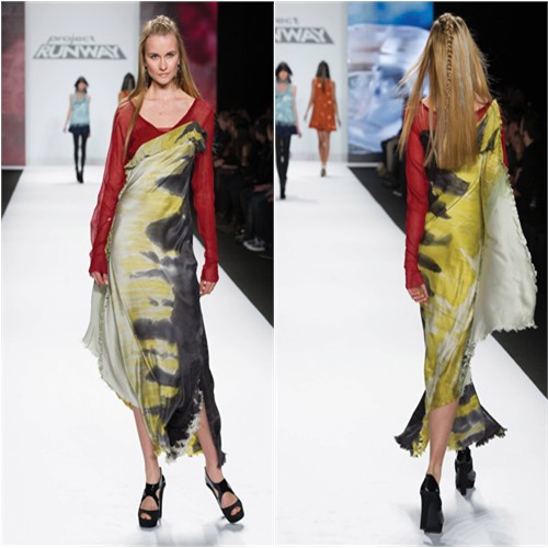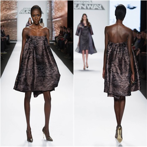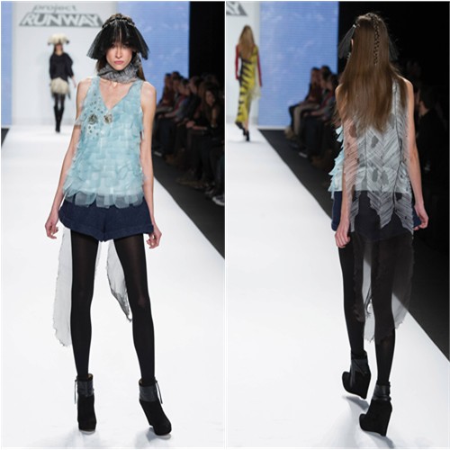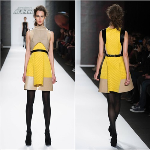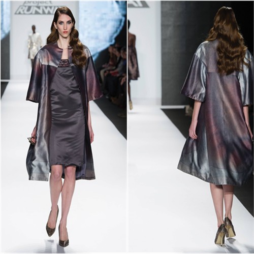 Great skirt, but that’s it. It was exactly what I expected it to be – hand-crafted textiles that make you think, but rendered in shapeless, unflattering, or just plain boring silhouettes. But considering how disorganized she was in the workroom – watching Tim cringe as she couldn’t find ANYTHING in her mess of fabrics – it wasn’t a total disaster of a show. But as expected, nothing could really compare to Michelle.