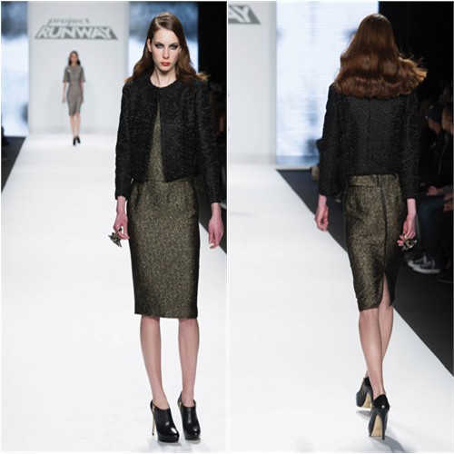 Stanley, stubborn bitch that he is, refused to take Nina’s brilliant critique into consideration. She recommended that he split up these pieces – show the top with a skinny pant, etc. It was a fantastic idea that would have made his whole collection look more youthful and cohesive, so of course he ignored that advice and showed the same exact matchy-matchy matronly look. Listen, I understand not wanting to listen to Heidi, who has no taste, or some random-ass guest judge who doesn’t actually know what they’re talking about. But when Nina tells you to change something, YOU CHANGE IT, or you go the hell home.
