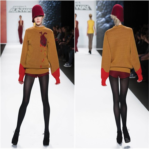 Michelle mentioned in her interview to Blogging Project Runway that she couldn’t put the sweater into production as it belonged to Lifetime…!