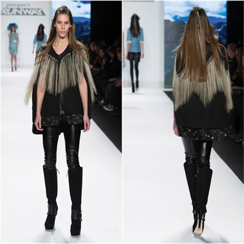 Another strong look. The hair samples don’t bother me as much as they did last week, because when you compare it to the rest of the collection, it’s pretty refined.