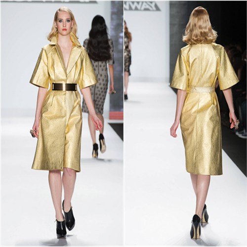 Probably my favorite look of the collection, though it’s not without flaws. Something about the neckline combined with the slightly odd sleeve length still reads as matronly – had the sleeves been short or hit right above the elbow, I think this could have been one of the only youthful looks in the collection. But even that wouldn’t stop it from looking like a Valentino knockoff.