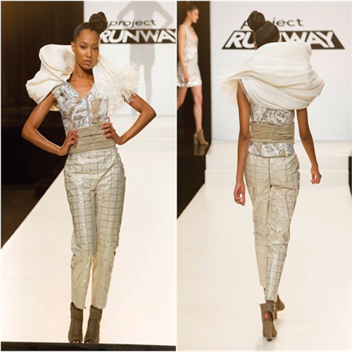 Guest Judge: June Ambrose, stylist. She wasn’t particularly memorable, but whenever the guest judge is someone who actually knows about fashion, rather than whatever Z-list reality star the producers could scrape together, I can’t complain.