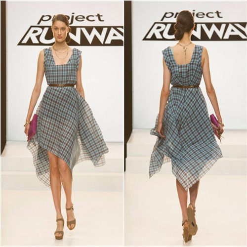 Let’s get real, dear readers – I’m from New Jersey, raised by Brooklyn-ites, I’ve lived in DC since the moment I was able to escape the Jersey Shore, and I’ve spent almost no time in the south. So unlike all of the crack addicts on the Project Runway team, I am not about to pretend that I am any sort of authority on the “modern southern woman.” I assume that like the “modern northern woman,” and every other modern woman, her style is dictated by much more than where she lives and varies based on her personality. Because, you know, we’re humans and not fashion automatons restricted to a particular aesthetic based on our geographical location. But I digress. My point is, I’m not really sure what’s modern about this look. It’s got a farm-girl-goes-to-fashion-school quality to it, but that’s still quite far removed from the “modern southern woman.” (Yes, I will continue to use ironic quotation marks around that phrase, because the producers made no attempt to define it.) I suppose it was better than everything else on the runway, but I hate awarding a win solely based on that.