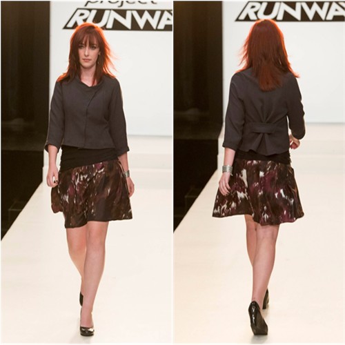I don’t know why everyone hated on this look quite so hard, or why everyone considered it “matronly.” The judges have been in the fashion industry way too long if they think that a job interview outfit should show more skin than this. Don’t get me wrong, I don’t love this or anything, and I think it was a bit on the dull side, but everyone I know could use a skirt like that. And the back of that jacket is beautiful, though I’m not sold on the front.
