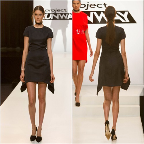 I’m just so relieved that self-proclaimed badass Helen is gone. Yes, she has talent. She hasn’t honed it yet and doesn’t have an identifiable POV. “[the red] speaks for itself,” means “I can’t explain it.” Her and her “sweet” accents like the hook-and-eye closure on the top of Kate’s reworked failed look last week and the “sweet” cap sleeves this week. Cap sleeves are impossible for normal women to wear. It doesn’t matter how slender one’s arms are: cap sleeves make them look fat. Like those short, calf-length pants that I still see people wearing: why would anyone to wear something that makes your hips look wide, your legs look short and your feet look big?