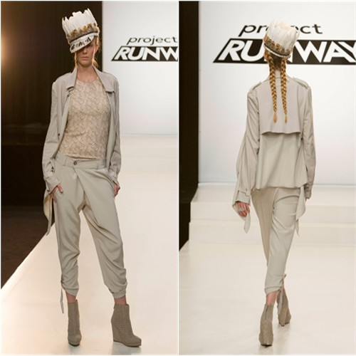 Thank God the judges put their crackpipes down long enough to recognize that Helen’s collection preview was a hot disaster. It was student work all the way; some people hate on Alexandria because she’s standoffish and pretty cold, but her assessment of Helen was spot-on – she can’t remove herself from her work, and that is the mark of a student, not a designer. Helen proved Alexandria 100% correct with her ill-fitting, poorly-sewn, completely ordinary clothes.
