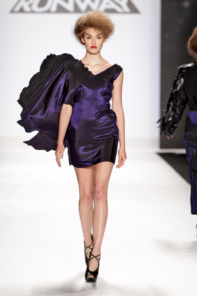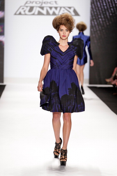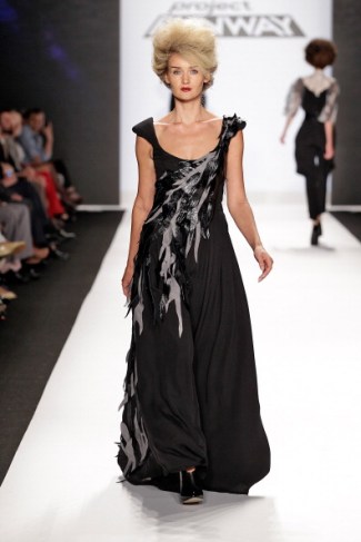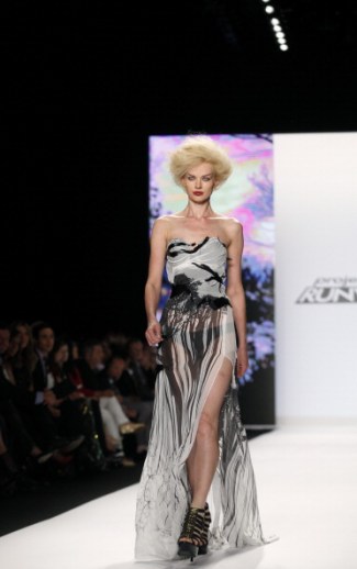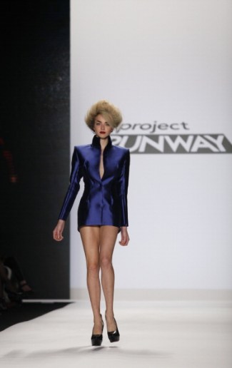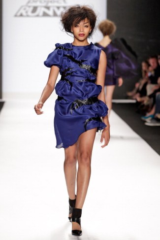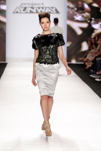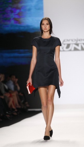Things I am tired of seeing on Project Runway: the high-low hemline. The all-black dress with black embellishments. The train. The cape. Cap sleeves. Weentsy little micro-minis. Nina casting her eyes to heaven at the appalling look presented to her. Heidi saying, “It’s a little sexy… I would wear this.” Yes, Heidi, we know you’re divorced. Not to worry, you’ll find someone else.