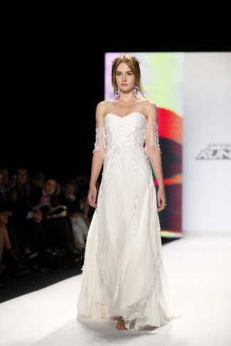 I like that she closed with a bridal gown, and I think this is one of her lovelier pieces, but there’s something too straight-jackety about the way her arms are bound. It’s making me uncomfortable.