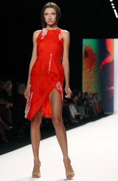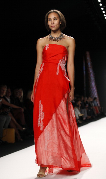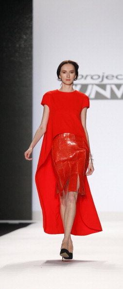 A fantastic opening look, but Helen’s collection was overall fairly hit-or-miss. Not coincidentally, most of the hits were in this red color that, as Helen herself said, “speaks for itself.” Well, I’m not one for letting the color do all the work, but that’s why this was such a great opening look – the design is fabulous and interesting, AND the color kicks ass.